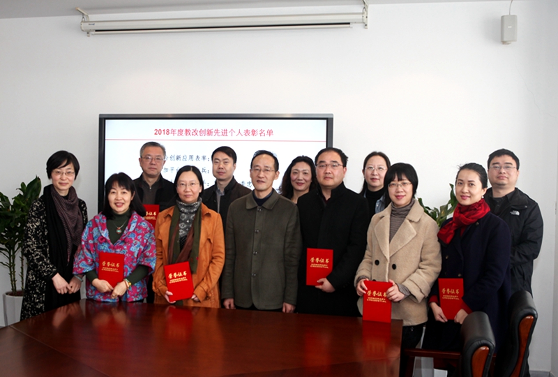 最后,对园区教师发展中心2018年度教改创新先进个人进行了表彰。融合创新应用表率万里虹同志、易加平台开发尖兵黄毅晟同志、创新人才培养能手曹宏与季忠云同志、教育质量提升先锋许凤同志、素质教育实践标兵沈兰与章扬安同志和学科教师培养示范张嘉同志喜获殊荣。