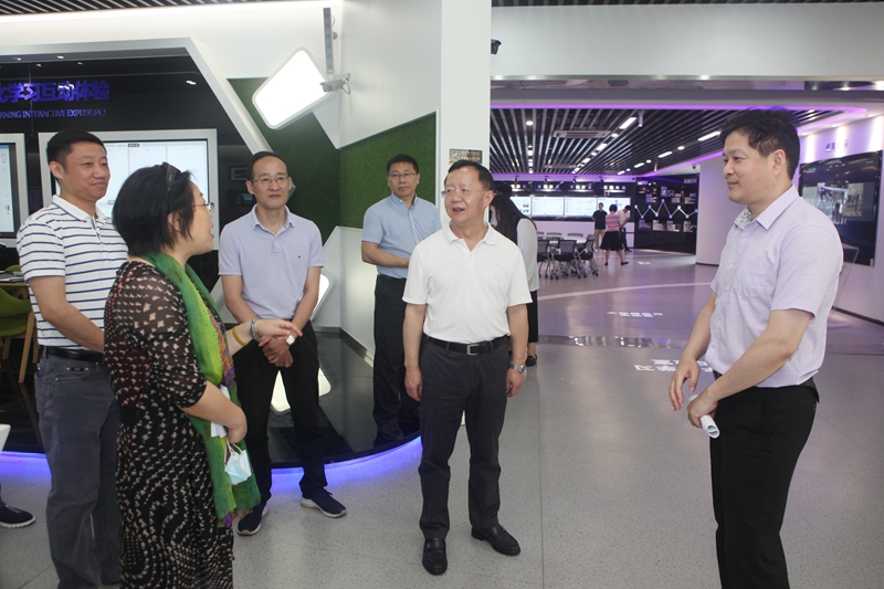 首先,朱江一行来到园区智慧教育大数据应用实验室和数字化学习实验室,听取了信息中心主任肖年志关于两大实验室建设情况的介绍,深入了解了园区中小学校面临的招生压力、师资队伍建设、校园安全监控、教育教学质量、教师幸福指数、数字化学习方式等情况,深切感受了园区教育大数据支撑“个性学、智慧教、精准管、科学测、智能评”的建设理念,以及教育大数据智慧应用对园区教育教学改革的促进作用。