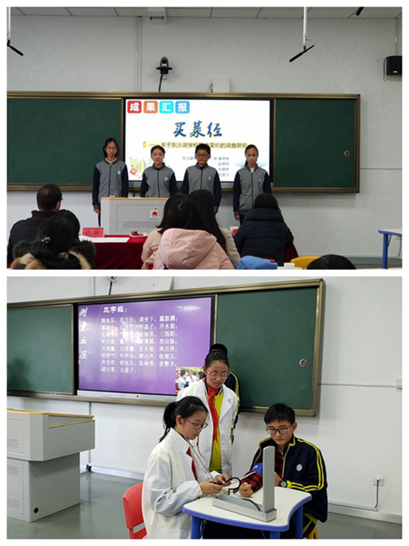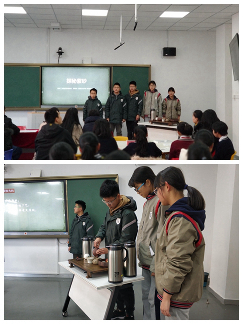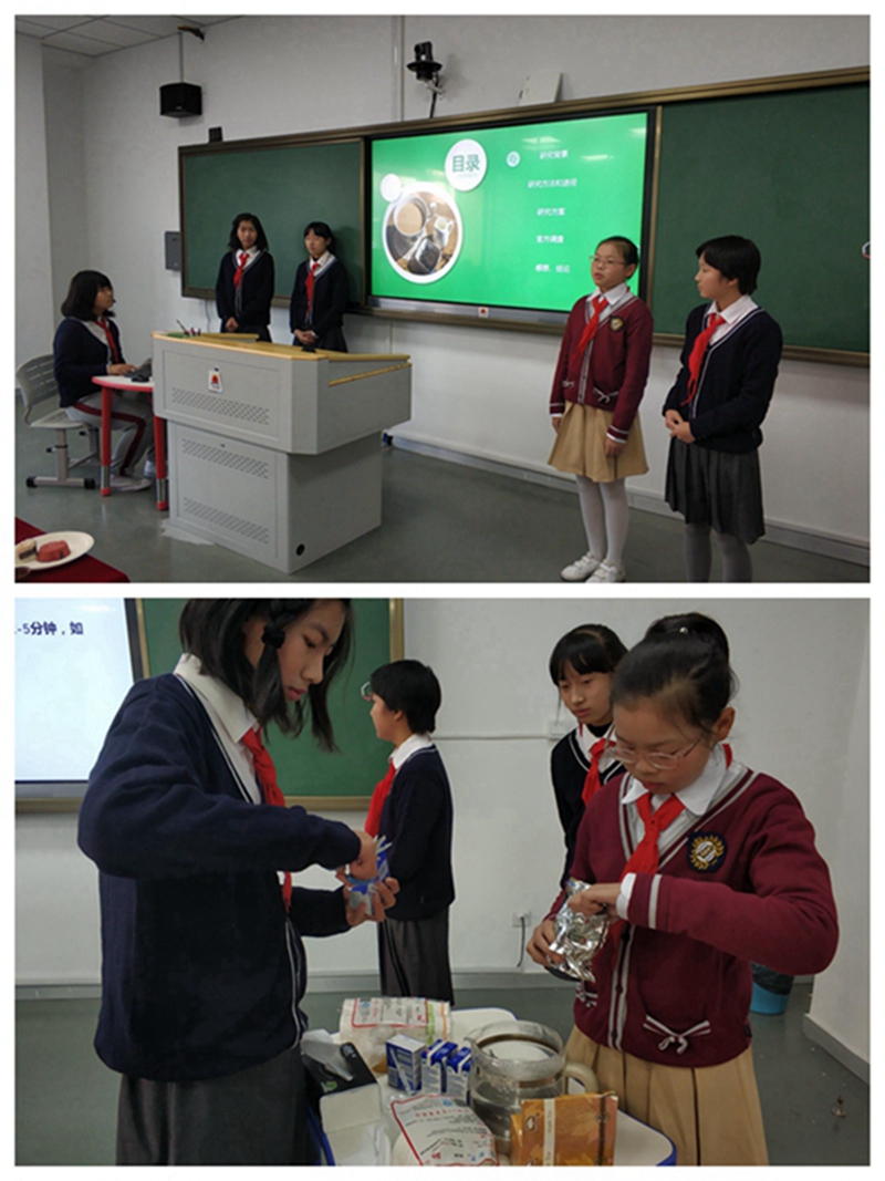 展评中,景城学校带来的课题《宜兴紫砂业调查与研究》从家中爸爸用的一把紫砂壶中获得了灵感,通过组队赴宜兴现场实地考察,亲手体验紫砂壶的制作、实验验证紫砂壶的功效等环节,运用多种研究方法完成了本次研究。课题在研究深度方面得到了评委老师的一致认可。星港学校的《关于奶茶那些事》聚焦最近关于奶茶添加成分曝光的热点问题展开研究,展示中同学们还为大家现场制作了健康的奶茶。东沙湖学校的《买菜经》,调查了学校周边邻里中心、菜市场等地的菜价,对菜价进行了统计、分析,并对买菜的人和卖菜的人进行了访谈。青剑湖学校的《我是血压保健员》,关注了与人们健康息息相关的高血压和低血压问题,并通过制作手抄报,在社区开展测血压活动,对血压知识进行了普及。金鸡湖学校的《苏韵茶香》致力于传统文化的传承,深入研究了苏州茶文化,现场为大家带来了传统地道的沏茶手法。