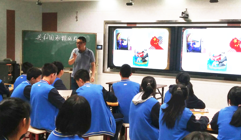 刘老师开设了初二年级《独立自主的和平外交》一课,课堂风格大气沉稳,却又不失幽默风趣。此课充分开发教材史料资源,构建国际背景,帮助学生整理“知识碎片”,形成世界发展大背景,帮助学生理解现有知识。步步精心、巧妙设计,呈现了新中国外交的发展概况,课堂生成完整,展现了扎实的教学基本功。