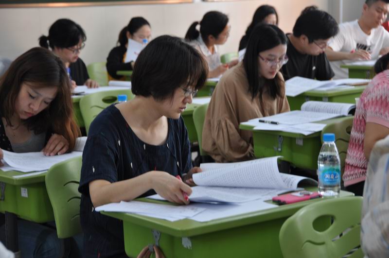 下午1点,园区教发中心袁健老师首先向来自园区各个初高中学校的语文备课组长和评卷老师们表达谢意,并对作文题目的拟定意图进行分析解答。星湖学校教科室主任蒋金涛老师担任本次活动的主持工作,他对阅卷流程和具体要求进行了布置。