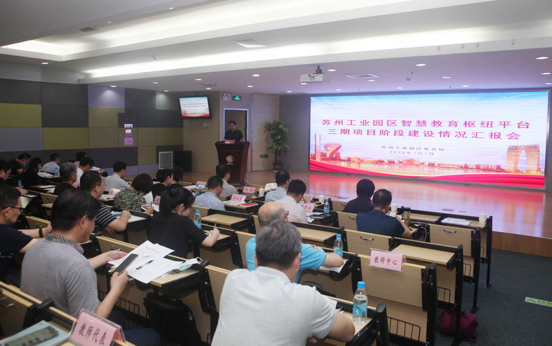2020年7月7日下午,苏州工业园区智慧教育枢纽平台三期项目阶段成果汇报会在苏州工业园区青少年活动中心成功召开。苏州工业园区教育局全体领导班子、各处室负责人、苏州工业园区教师发展中心主任室等出席会议。会议由教发中心副主任杨原明主持。