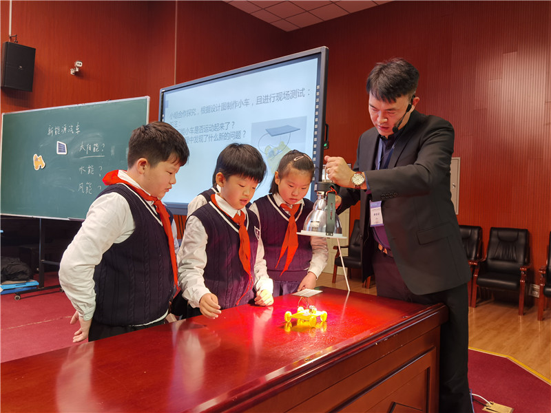 25日下午,苏州工业园区新城花园小学潘小军老师在小学分会场上执教了《新能源汽车》一课,从“能源”这一科学概念出发,以生活中的新能源汽车引入,引导学生对小组的方案实施的可能性讨论交流,从具体的工程任务出发,经历真实问题的思考与解决的过程,获得与会代表们一致好评。